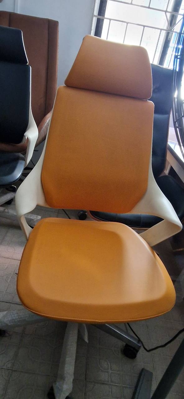 Upgrade your workspace with this modern ergonomic office chair designed for ultimate comfort and support. Featuring a high backrest with an integrated headrest, curved armrests, and a plush cushioned seat, it ensures proper posture during long hours of work.
